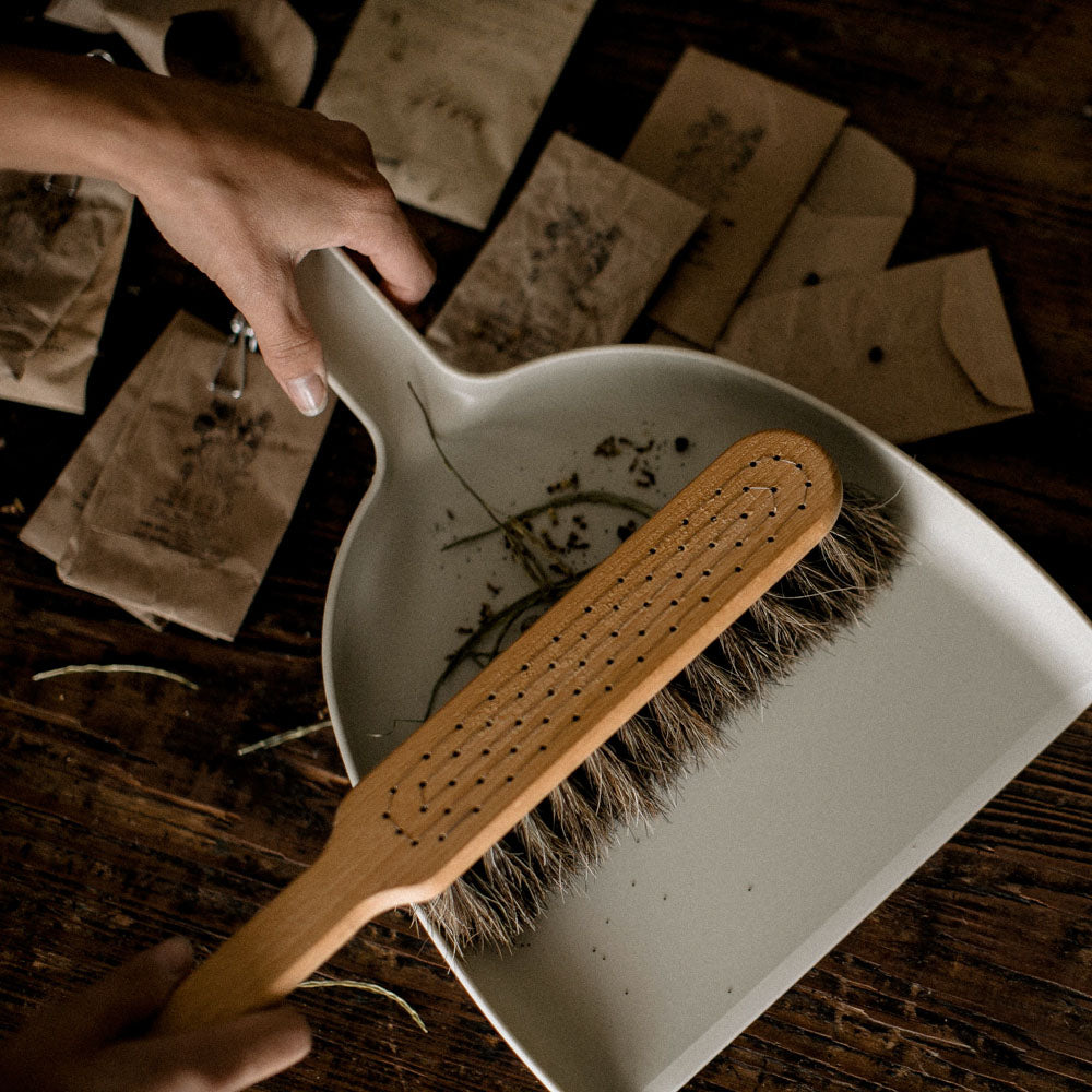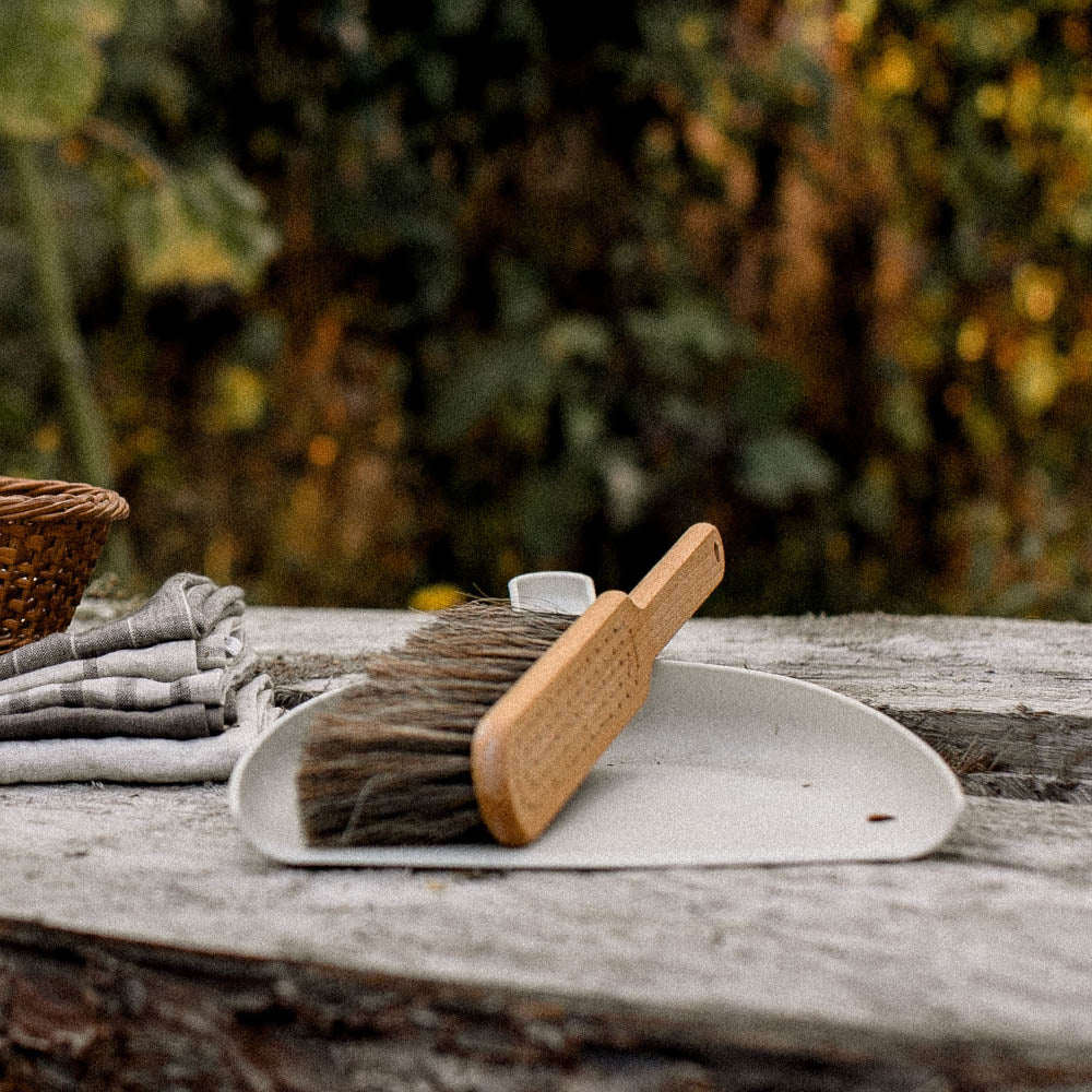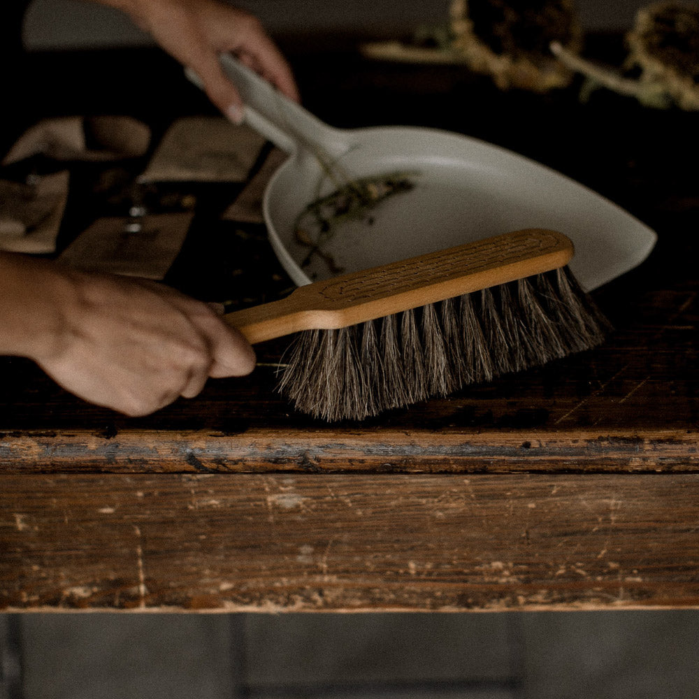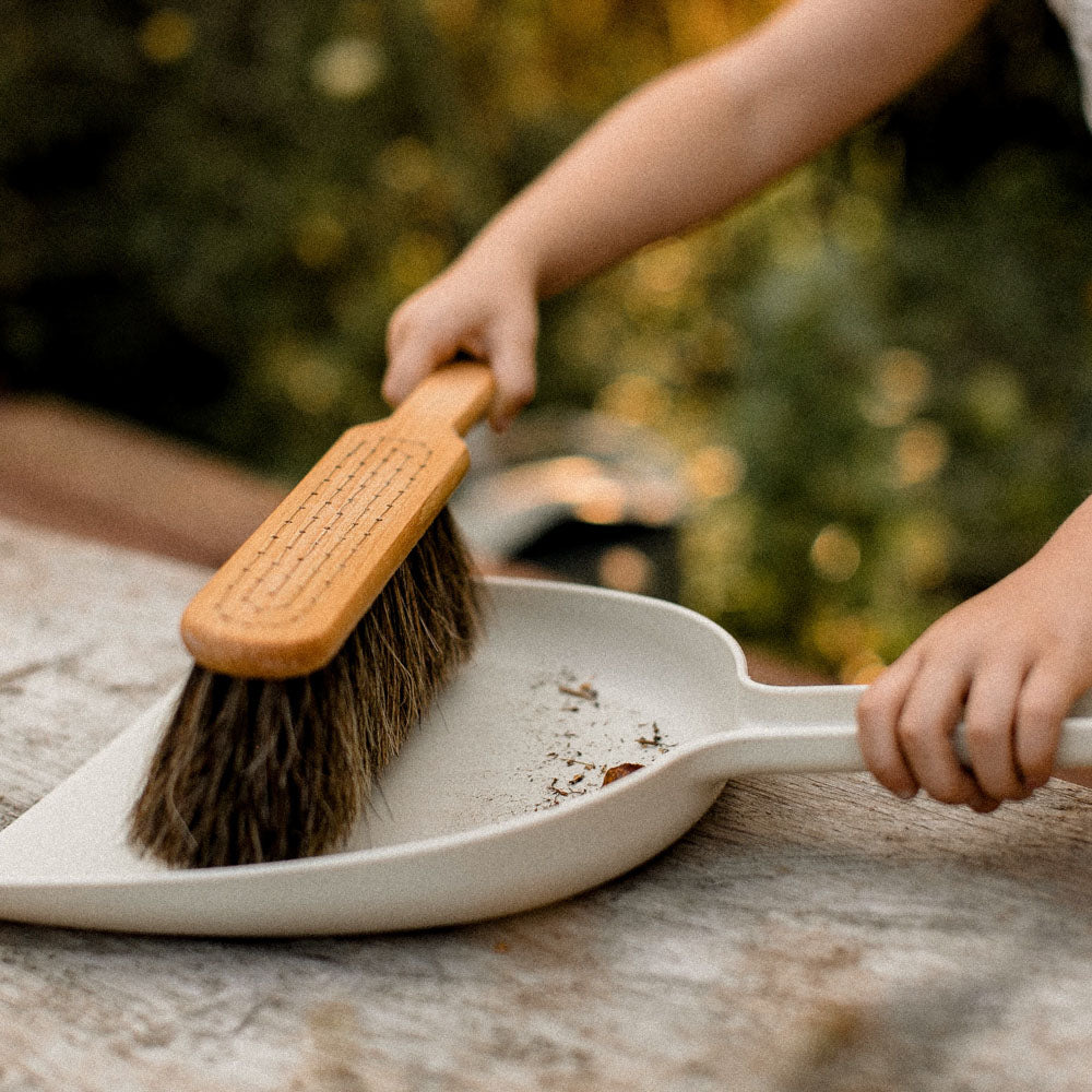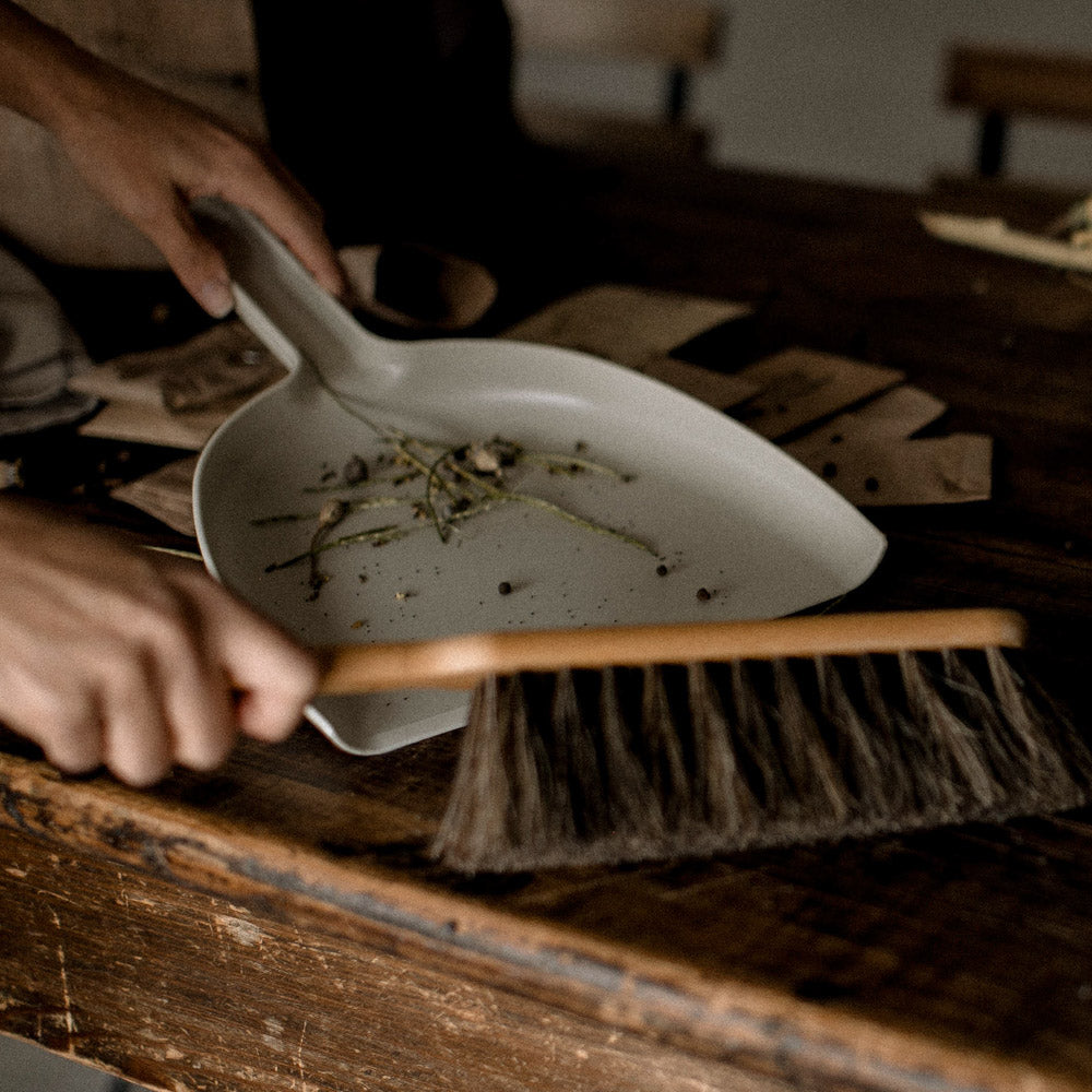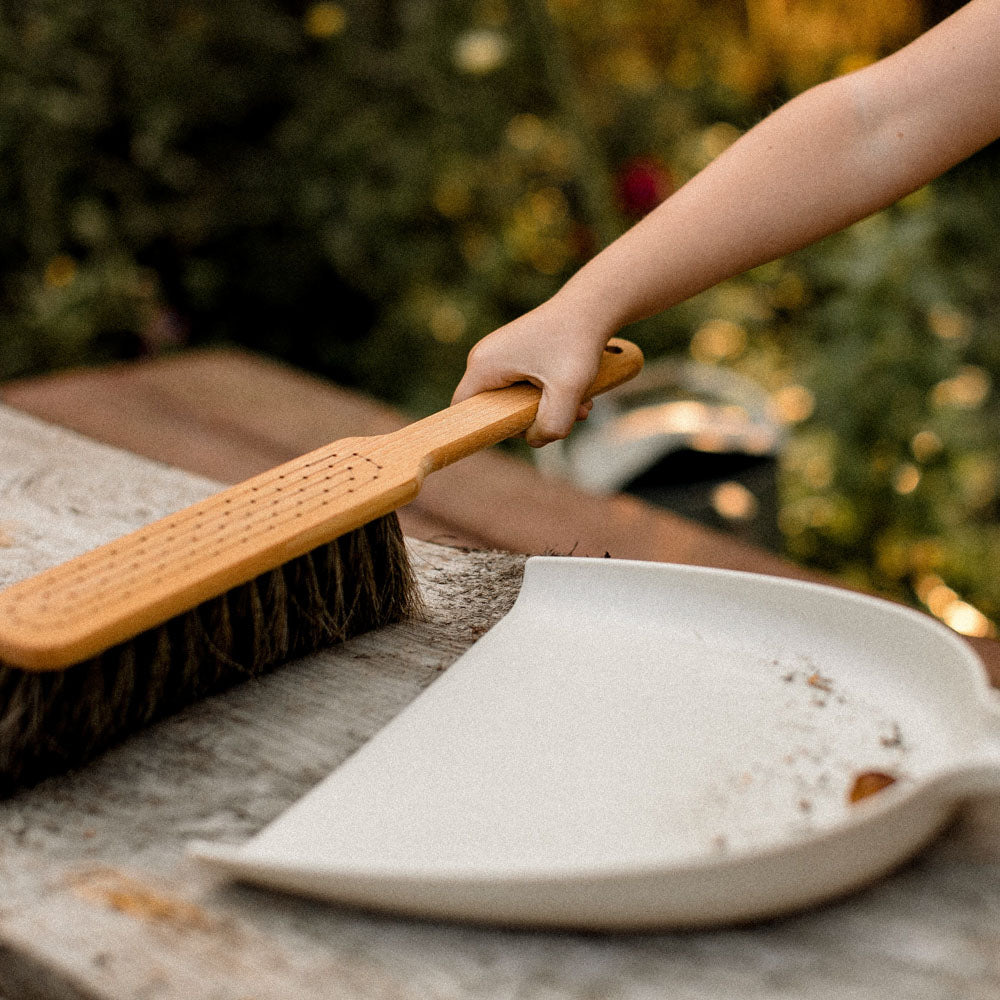 I absolutely love the brush, it cleans everything from the kitchen floor to the porch. The only thing I would say is the lip on the dust pan is not as thin as it could be, making it a bit difficult to sweep very fine particles up.
