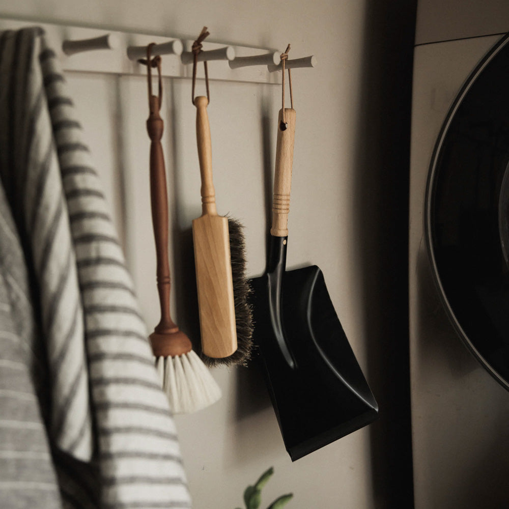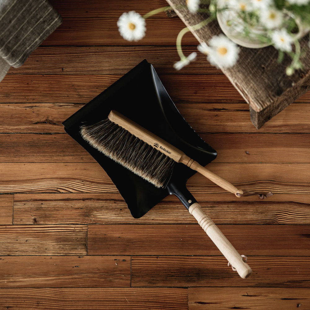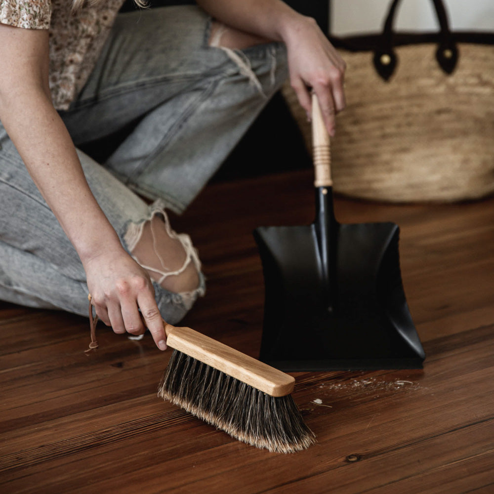 Our German made dustpan and brush is another example of beauty and function in the low waste space. Enamel coated steel and solid wood handles create a long-lasting dust pan and soft but hardy horsehair is effective at sweeping up debris, dust and dirt.