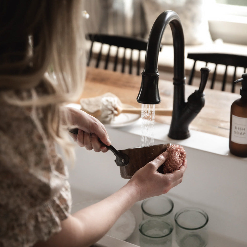 I was convinced after reading that US made scrubbers - unlike this one - often flake off bits of copper which can be bad for your health. This one cleans the pot well and looks nice too! Shipped efficiently. Felt very good getting it by mail.