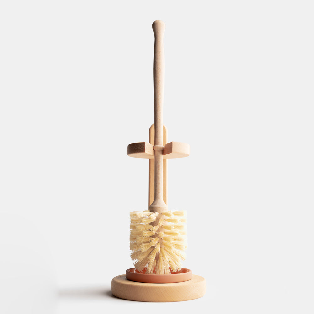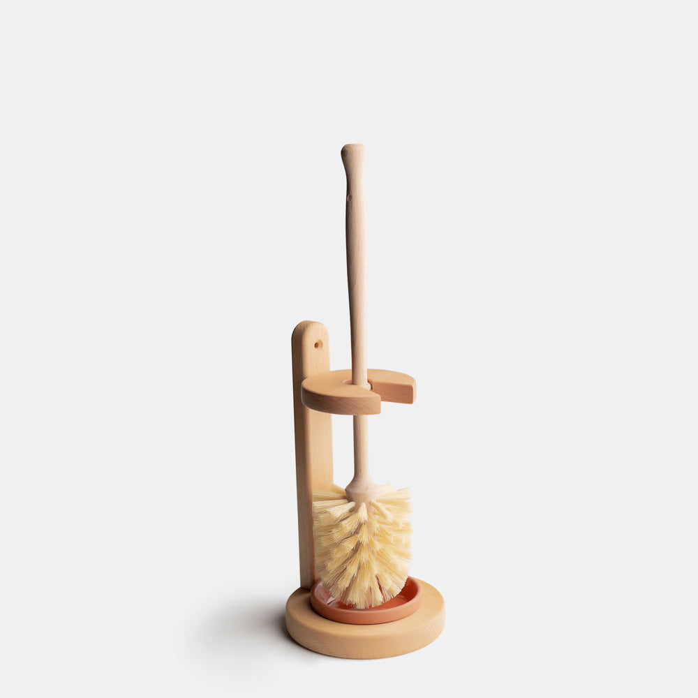 A simple, beautifully designed toilet brush by Bürstenhaus Redecker. Beechwood and Tampico fiber, Terracotta Dish.
