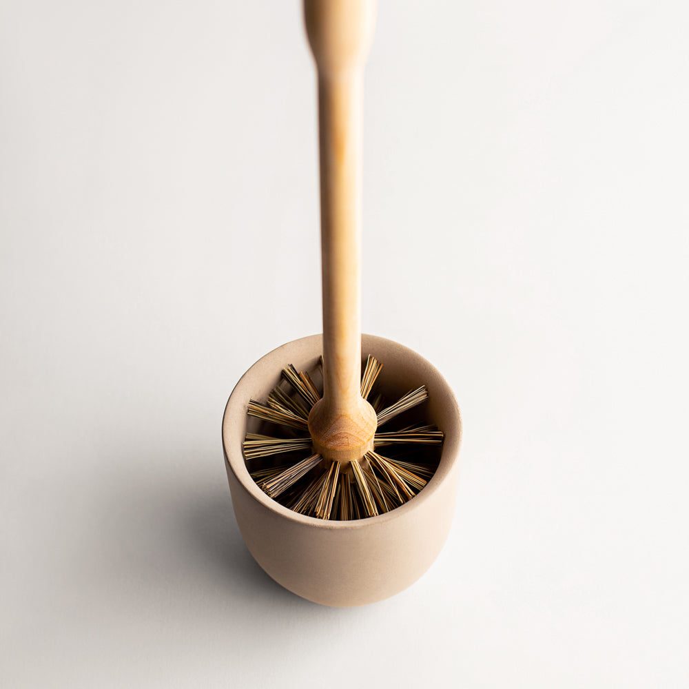 This toilet brush boasts a beautiful birch handle and aggressive bristles for efficient cleaning. The incorporation of polymer into the concrete stand increases its flexibility and durability. Handcrafted by Iris Hantverk in a foundry outside of Stockholm.