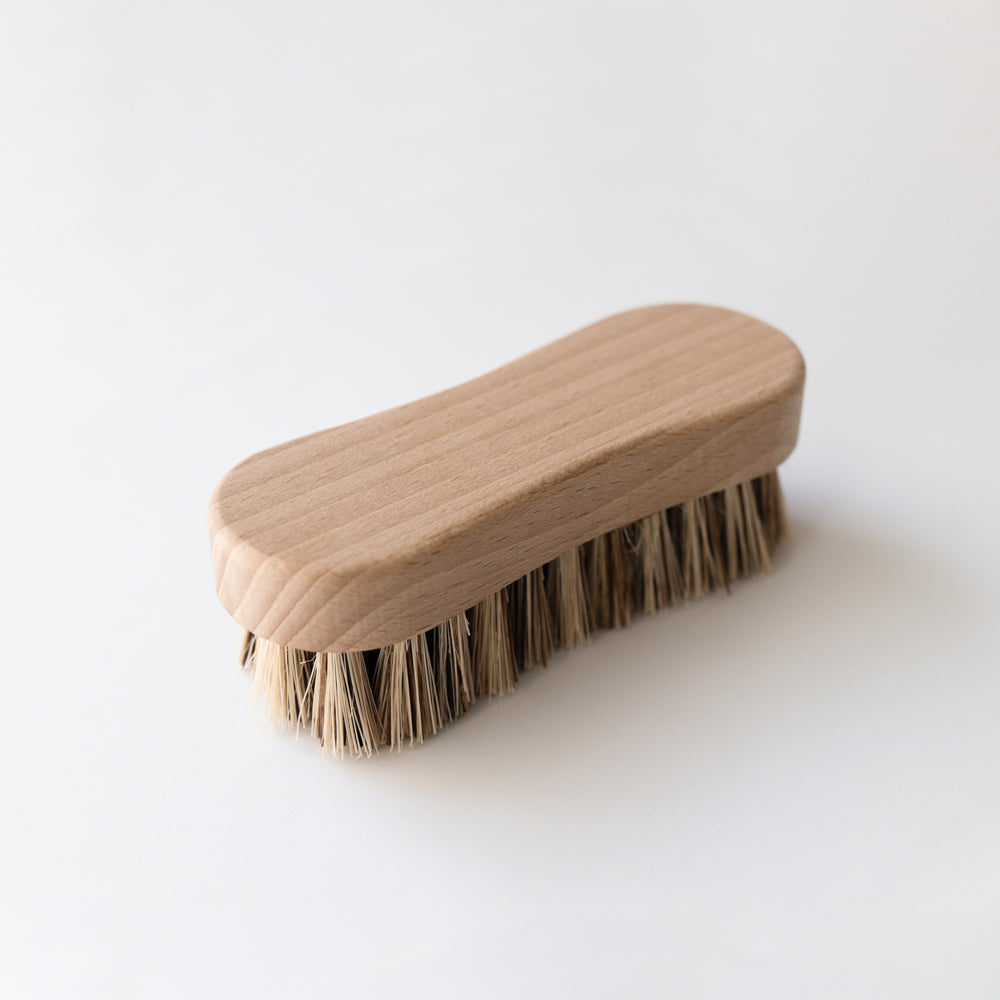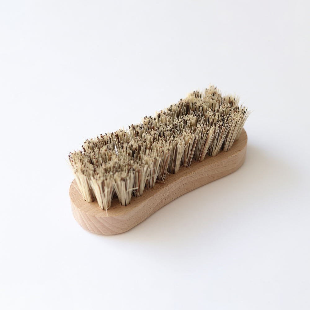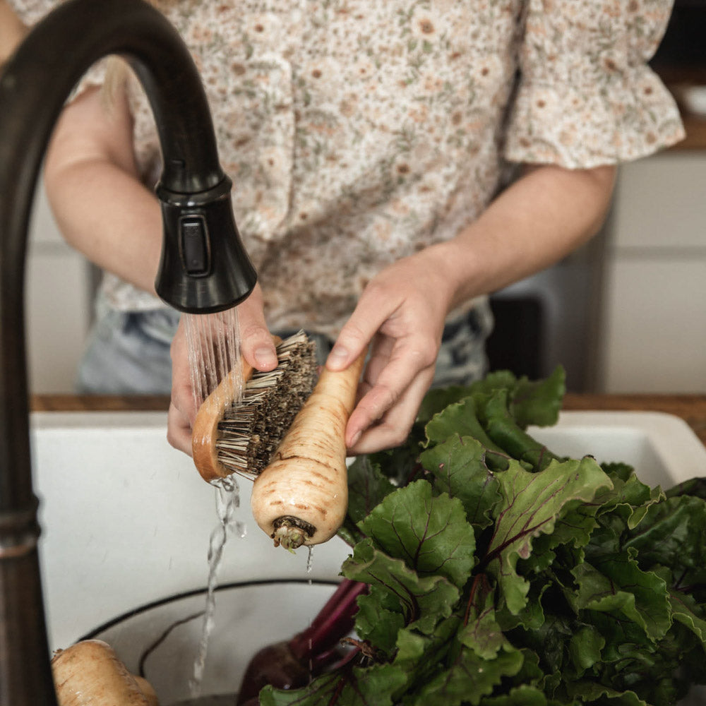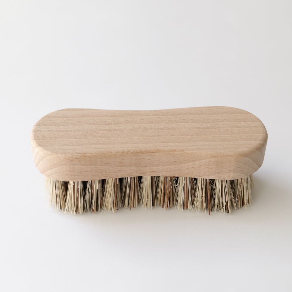 A hardy vegetable brush in birch and union mixture, perfect for for scrubbing potatoes and root vegetables.